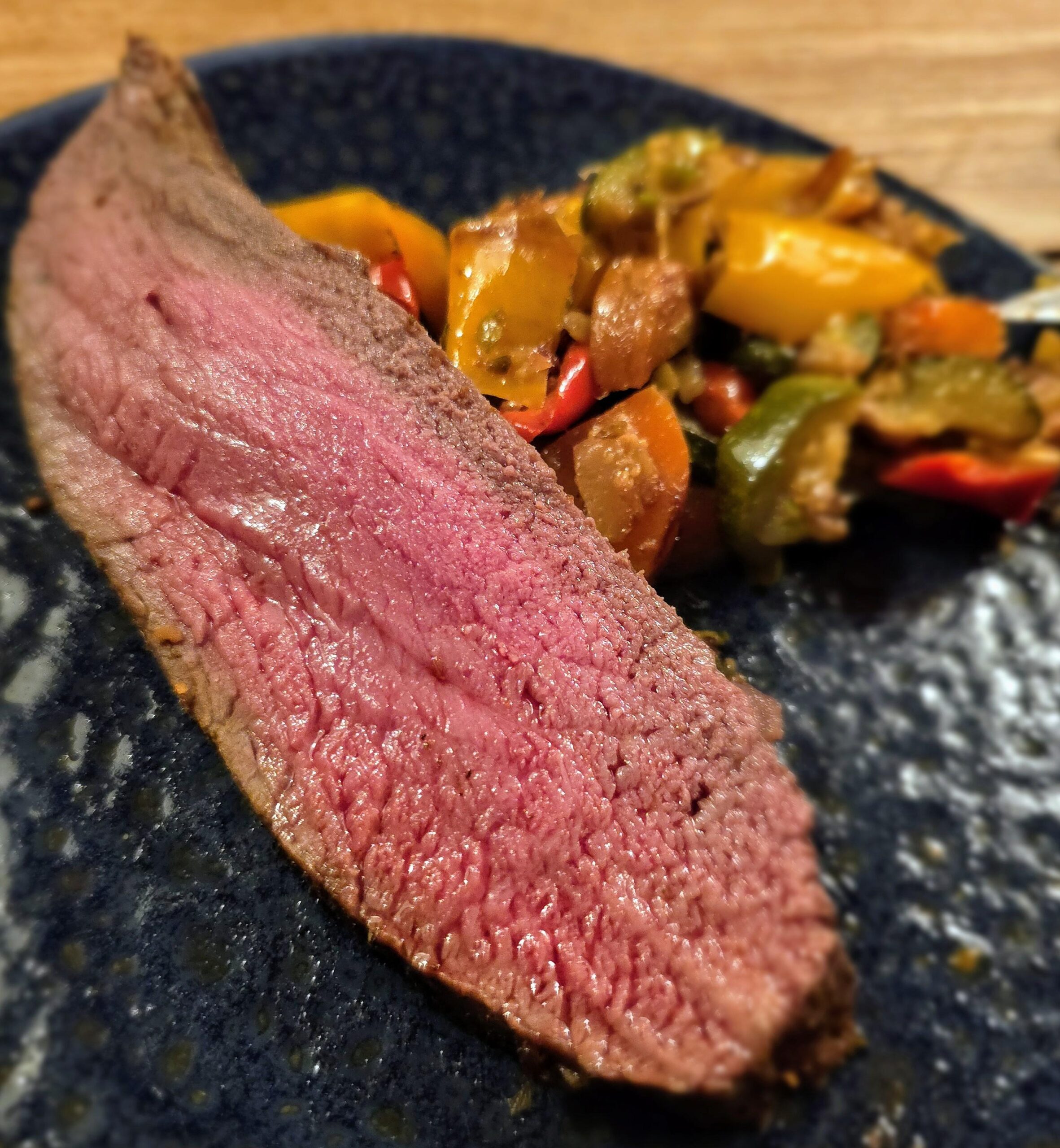 Rosbief kan gebraden worden in een pan of in de oven. Het is een mager stuk vlees. Vleesch van Plante heeft diverse porties beschikbaar, ook van groter gewicht zoals een kilo. Bel of mail gerust als je interesse hebt in rosbief van afwijkend gewicht voor 4 of meer personen. Prachtig om heel te serveren omringt met roast potatoes, pastinaak en rode ui. Verwarm de ovenschaal met olie in de oven. Pel rode ui en snijd deze door midden. Schil en kook kruimige aardappelen en pastinaak (ook geschild) totdat deze net niet gaar zijn. Hussel de aardappelen, pastinaak en ui in de ovenschaal (warm!). Ik braad de rosbief rondom aan en gaar ‘m af in de oven, tussen de groenten, met een kernthermometer op 50°C. Als de rosbief klaar is, kan deze rusten op een snijplank losjes afgedekt met aluminiumfolie. Zet in tussen de oven op 230°C hetelucht, hussel weer en geef de groenten nog een knapperige boost, lekker in het sap van de rosbief.